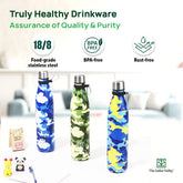 Vacuum Insulated Stainless Steel Cola Bottle For School, College, Office | Yellow & Blue, 1 Liter - Double Walled Vacuum, Hot & Cold Temperature, Leak Proof, BPA-Free