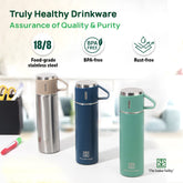 Stainless Steel Vacuum Insulated Flask With Drinking Mug - Green, 500ml | Double Walled, Hot & Cold Temperature, Leak Proof, BPA-Free
