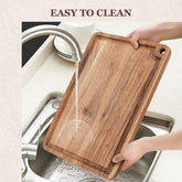 Large Wooden Chopping Board, Mango Wood | Natural Finish Large Chopping Board With Space For Plate - Chopping Board For Kitchen | Cutting Board Wood - Wooden Cutting Board