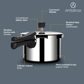 Stellar Stainless Steel Triply Mirror Finish Pressure Cooker With Gasket 5 Liters | Rivet Less Handle | Induction & Gas BaseTriply construction for durability, featuring a matte finish interior and a mirror-polished exteriorExperience a seamless and aesthetic appearance with our innovative rivetless handle design.Crafted...- $153.20 USD