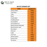 Stainless Steel Delight Solid Dinner Set Of 68 Pieces, Silver | Dishwasher Safe Included Components: 6-Pieces Dinner Plates, 6-Pieces Side Plates, 6-Pieces Glasses, 6-Pieces Bowls, 6-Pieces Chutney Bowls, 6-Pieces Pudding Bowls, 3-Pieces Serving Bowl wit Lid, 1-Piece Perforated Serving Basting Spoon, 1-Piece Solid Serving...- $246.21 USD