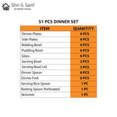Stainless Steel Shagun Solid Dinner Set Of 51 Pcs, Silver | Dishwasher Safe Premium Quality Stainless Steel: Our dinner set is made from high-quality stainless steel, known for its corrosion resistance and longevity. You can trust that your investment will last for years to...- $300.32 USD