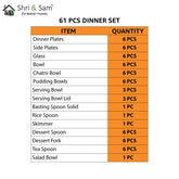 Designer Stainless Steel Delight Laser Bloom Dinner Set Of 61 Pieces, Silver | Dishwasher Safe Included Components: 6-Pieces Dinner Plates, 6-Pieces Side Plates, 6-Pieces Glasses, 6-Pieces Bowls, 6-Pieces Chutney Bowls, 6-Pieces Pudding Bowls, 3-Pieces Serving Bowl wit Lid, 1-Piece Solid Serving Basting Spoon, 1-Piece...- $255.94 USD
