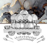 Designer Stainless Steel Delight Laser Bloom Dinner Set Of 46 Pieces, Silver | Dishwasher Safe & Easy To Clean