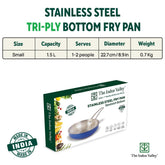 Triply Stainless Steel Fry Pan, 24cm - Silver | Non Stick Stainless Steel Frying Pan - Easy To Clean & Dishwasher Safe