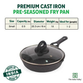 Pre-Seasoned Black Cast Iron Fry Pan Or Skillet With Glass Lid - Medium, 20.3cm, 8 Inch, 0.9 Ltr, 1.6 Kg | Induction Friendly, Nonstick Fry Pan, 100% Pure & Toxin Free, No Chemical Coating