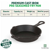 Pre-Seasoned Black Cast Iron Fry Pan Or Skillet With Long Handle - Medium, 25cm, 9.8 Inch,1.6 Ltr, 2.4 Kg | Induction Friendly, Nonstick Fish Fry Pan,100% Pure & Toxin Free, No Chemical Coating