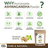 Humanveda Pure & Natural Ashwagandha Root Powder Withania Somnifera Helps Boost Strength, Stamina & Energy, Stress Relief Helps Fight Anxiety & Stress | 100gm 0.2lbs