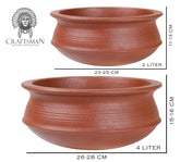 Deep Burned Uncoated Clay Pot Or Mitti Handi Combo With 2 Wooden Spatulas Complimentary Pack Of 3 - Red, 1+2+4 Liters | Pre-Seasoned Mud Pot - Unglazed, Double Fired, Hand Crafted
