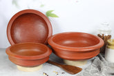 Deep Burned Uncoated Clay Pot Or Mitti Handi Combo With 2 Wooden Spatulas Complimentary Pack Of 3 - Red, 1+2+3 Liters | Pre-Seasoned Mud Pot - Unglazed, Double Fired, Hand Crafted