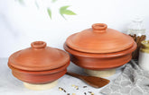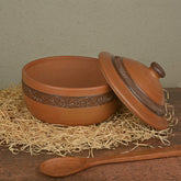 Handcrafted Earthenware Clay Handi Or Pot With Lid For Cooking & Serving - Brown, 2 Liters | Clay Dahi Handi, Mathni - Clay Handi For Gas Cooking