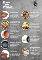 Ornately Handcrafted Natural Clay Round Bottom Handi - 1 Liters | Clay Dahi Handi - Cooking & Serving Pot