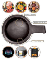 Uncoated Clay Fry Pan For Cooking & Serving With 2 Wooden Spatulas Complimentary - Black, 1 Liter | Pre-Seasoned Mud Vessel - Unglazed, Double Fired, Hand Crafted | Mitti Tadka Pan