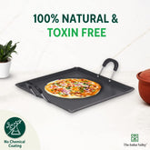 Pre-Seasoned Black Square Iron Tawa With Twin Handle & Silicon Grip - 30.4 Cm, 12 Inch, 3.1 Kg | Induction Friendly, Pre-Seasoned Tawa, 100% Pure & Toxin-Free, No Chemical Coating