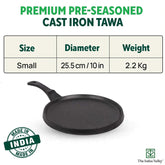 Pre-Seasoned Black Cast Iron Tawa For Dosa, Chapathi - 25.5cm, 10 Inch, 2.1 Kg | Induction Friendly, Naturally Nonstick, 100% Pure & Toxin-Free, No Chemical Coating