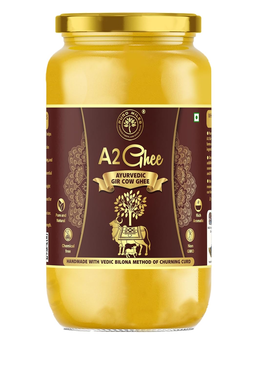 100% Natural A2 Ayurvedic Gir Cow Desi Ghee By Puro Miles | Natural & Healthy Gir Cow Cultured Desi Ghee Perfect For Cooking | (1 Litr) 33.8 Ounce | Jar Pack