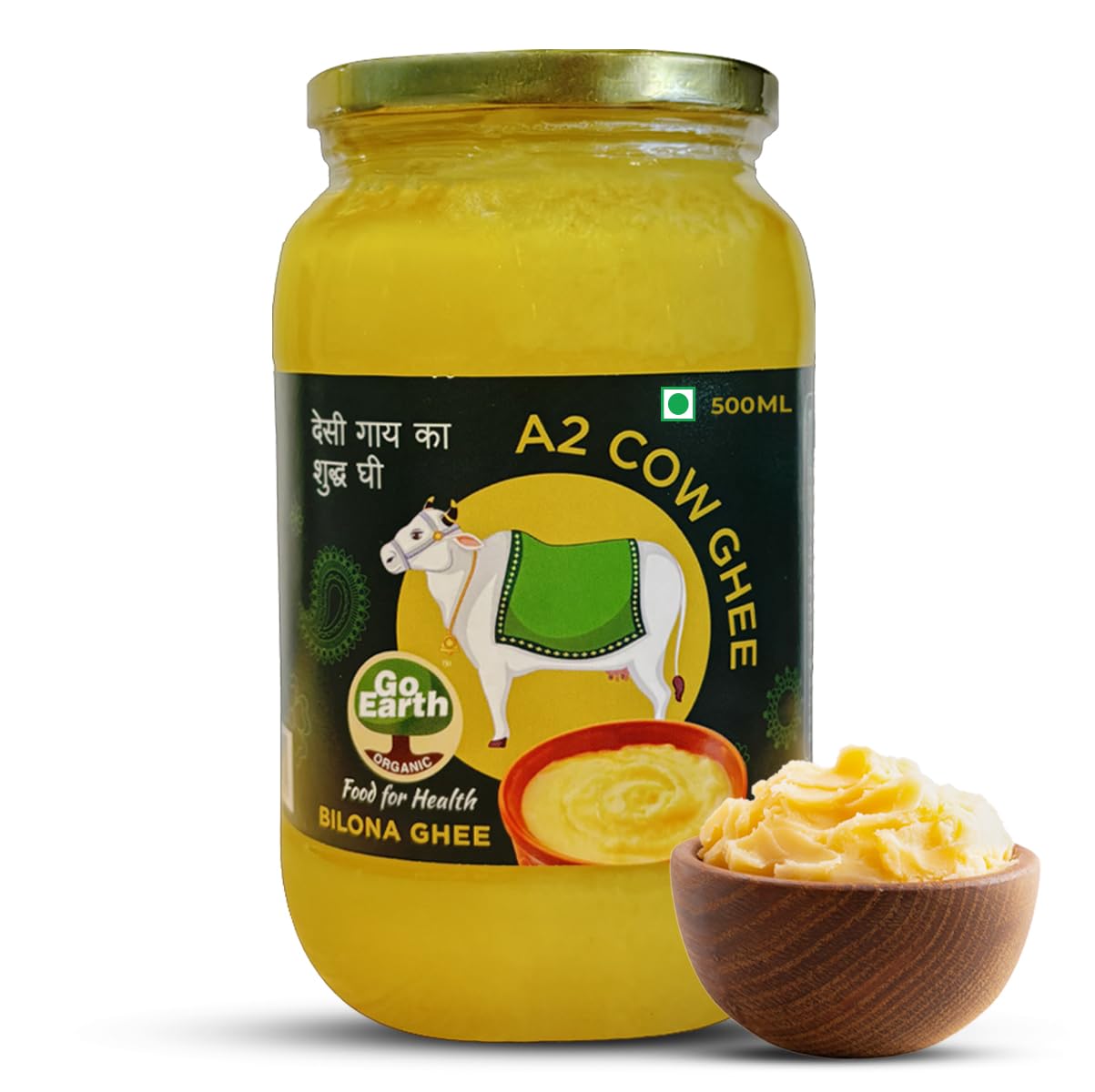 100% Natural A2 Cow Ghee By Go Earth | Pure & Natural Traditional Bilona Method Desi Healthy Ghee For Cooking & Pooja | (500ml) 16.9 Ounce | Jar Pack