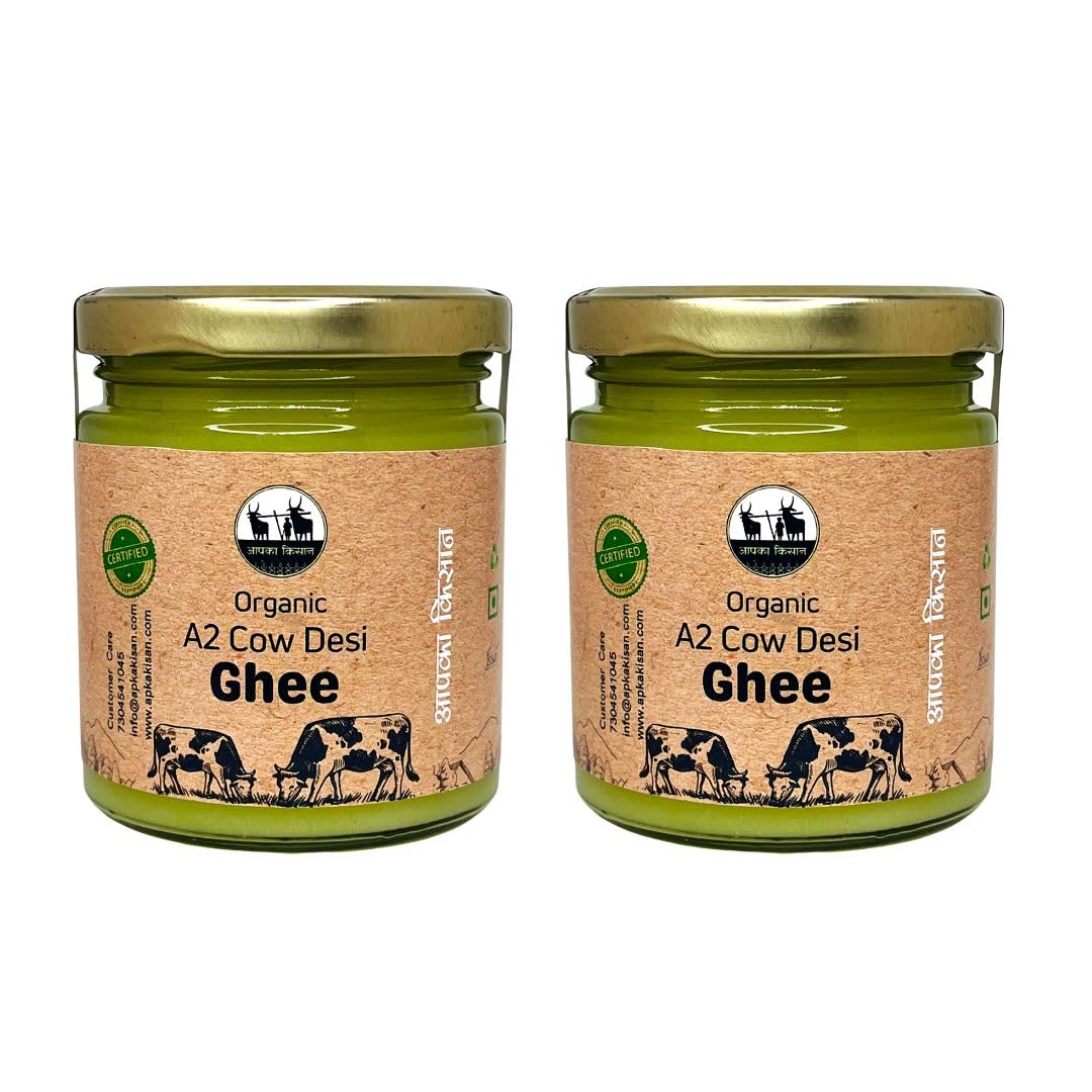 100% Natural A2 Desi Cow Ghee By Apka Kisan | Good Source Of Energy & Protein Fiber Healthy Desi Cow Ghee | 600ml (300ml * 2) 20.2 Ounce | Jar Pack