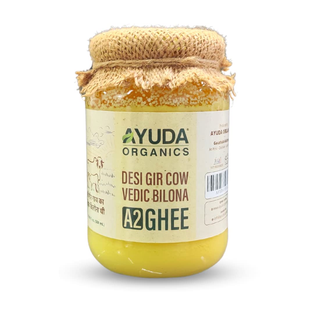 100% Natural A2 Desi Cow Ghee By Ayuda | Traditional Homemade Curd Churned Healthy Pure Desi Ghee Good For Parathe | (500ml) 16.9 Ounce | Jar Pack