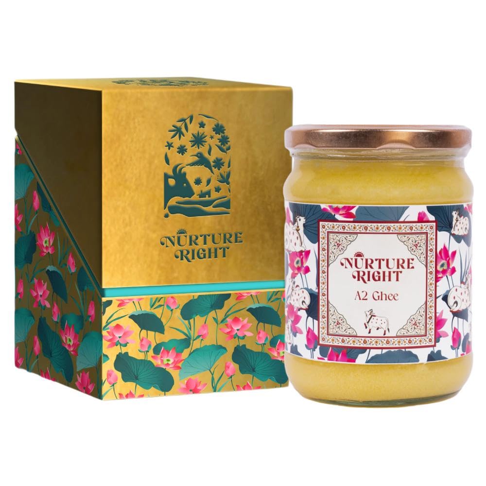 100% Natural A2 Desi Gir Cow Ghee By Nurture Right | Nourishing, Natural & Healthy Desi Ghee Perfect For Bakes Cookies | (500ml) 16.9 Ounce | Jar Pack