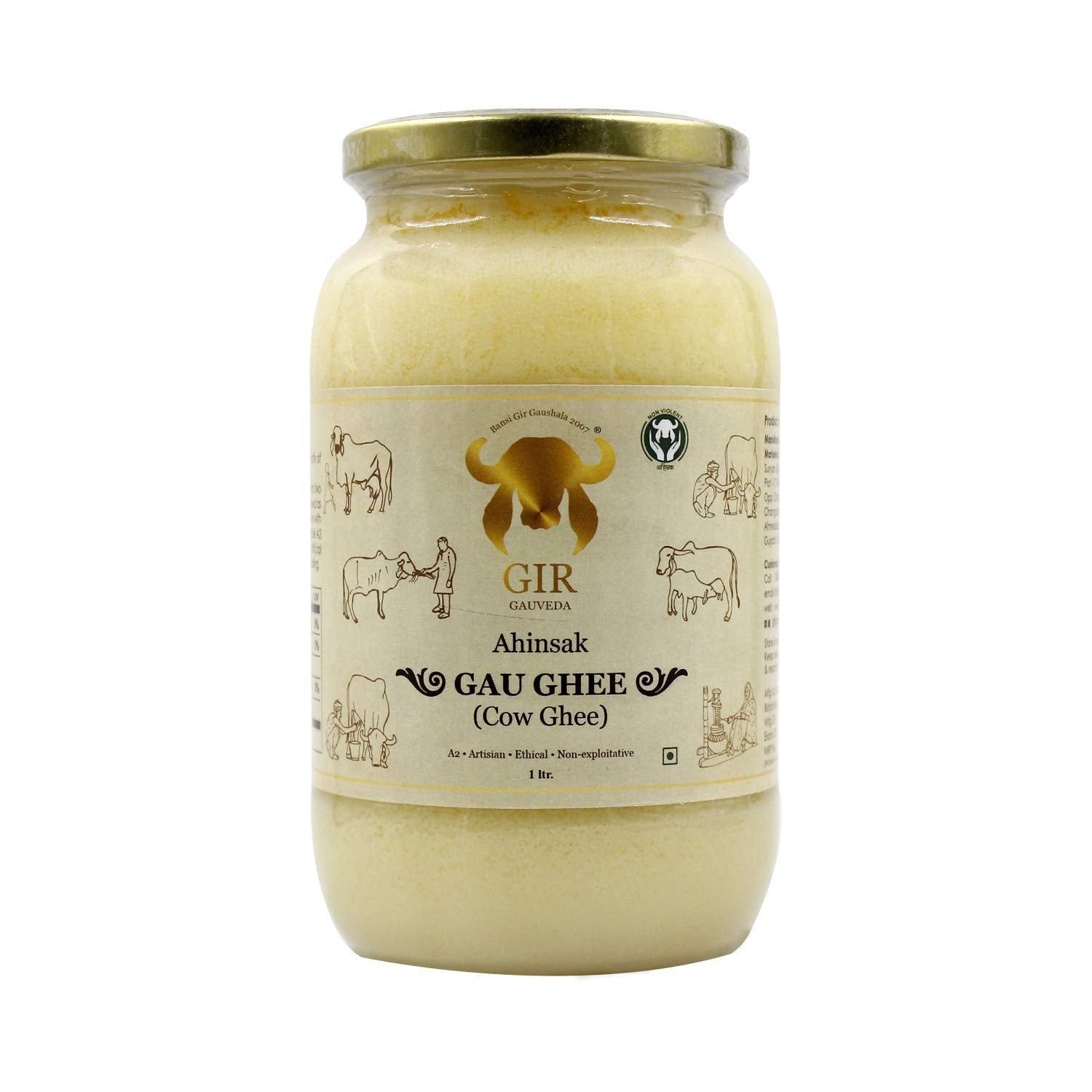 100% Natural Ahinsak Gau Ghee By Gir | Healthy & Delicious Nutrients Pure Desi Ghee Making For Rotis | (1 Litr) 33.8 Ounce | Jar Pack