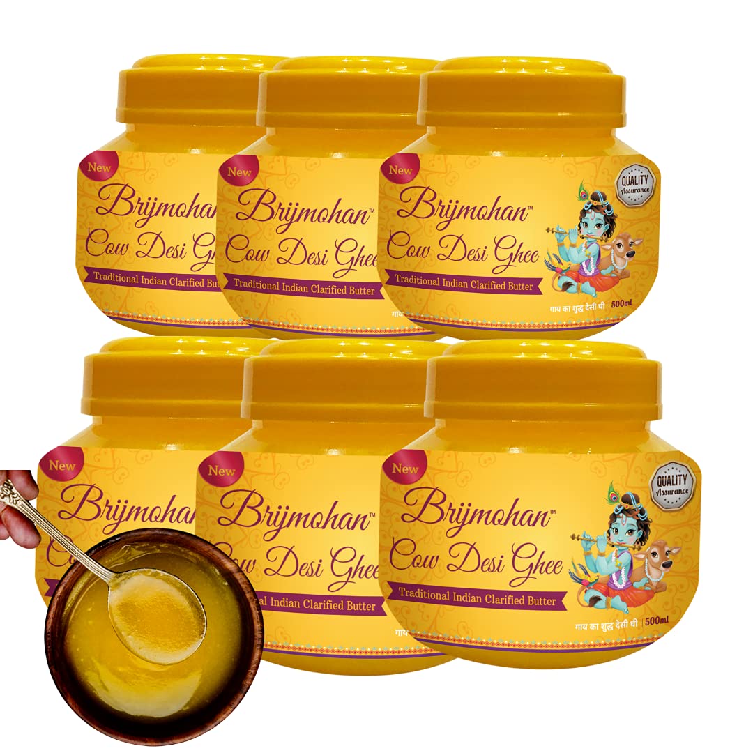 100% Natural Cow Desi Ghee By Brijmohan | Naturally & Healthy Pure Desi Ghee Perfect For Use Puja | 3 Litre (500ml * 6) 101.4 Ounce | Jar Pack