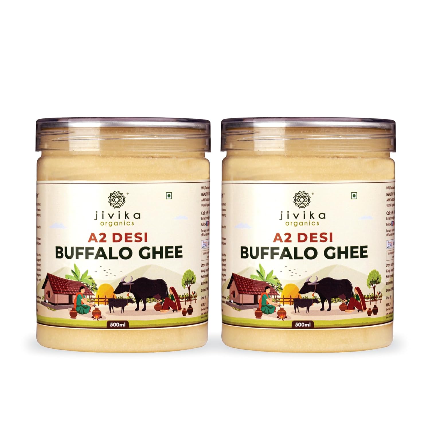 100% Pure A2 Desi Buffalo Ghee By Jivika Naturals | Good Source Of Vitamin A & Healthy Desi Ghee Perfect For Deep Frying | 1 Litre (500ml * 2) | 33.8 Ounce | Jar Pack