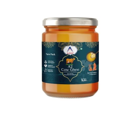 100% Pure A2 Desi Cow Ghee By Ajnar | Rich In Nutrients & Flavor Made From Traditional Bilona Method Desi Ghee Good For Cooking | (1 Litre) 33.8 Ounce | Jar Pack