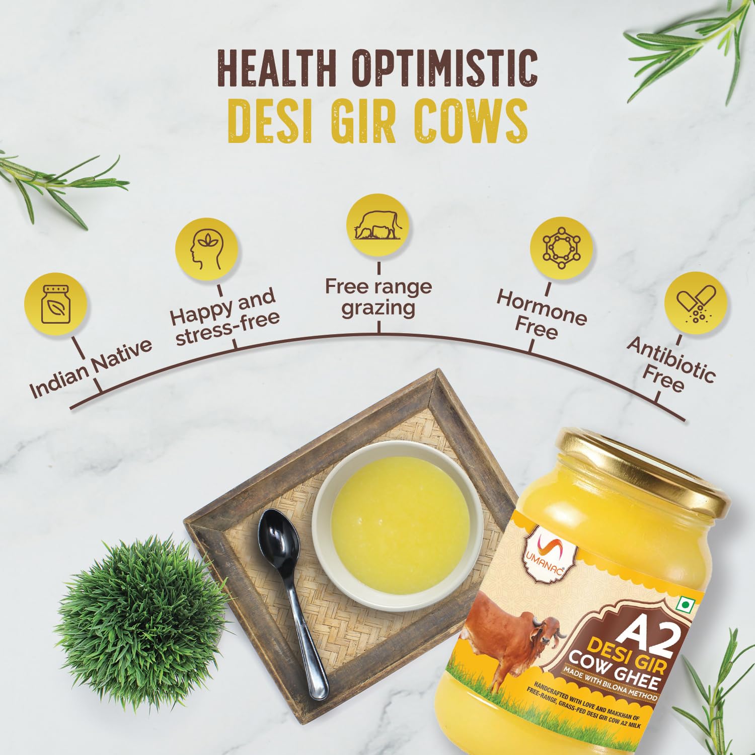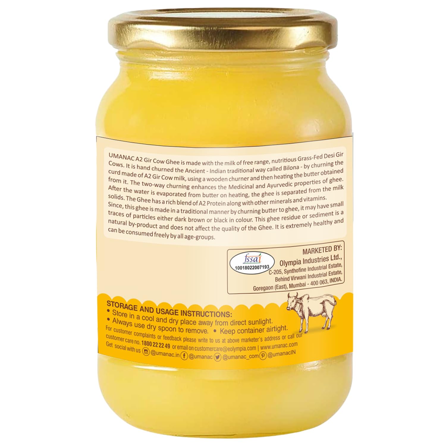 100% Pure A2 Desi Gir Cow Ghee By Umanac | Traditional Hand Churned Bilona Method Desi Ghee Good For Health | (500ml) 16.9 Ounce | Jar Pack