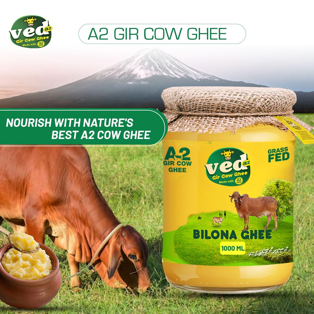 100% Pure A2 Gir Cow Ghee By Ved-A2 | Traditional Bilona Method Healthy Desi Ghee Good For Baking | (1 Litr) 33.8 Ounce | Jar Pack