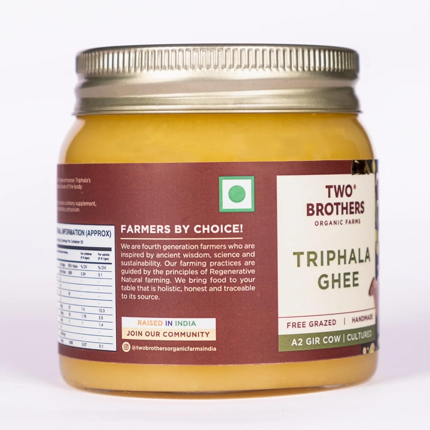 Premium Quality: Indulge In The Superior Quality Of Two Brothers Organic Farms' Triphala Ghee, Crafted With Care From Desi Cow Ghee Cultured Milk For An Unparalleled Daily Care And Wellness Experience.