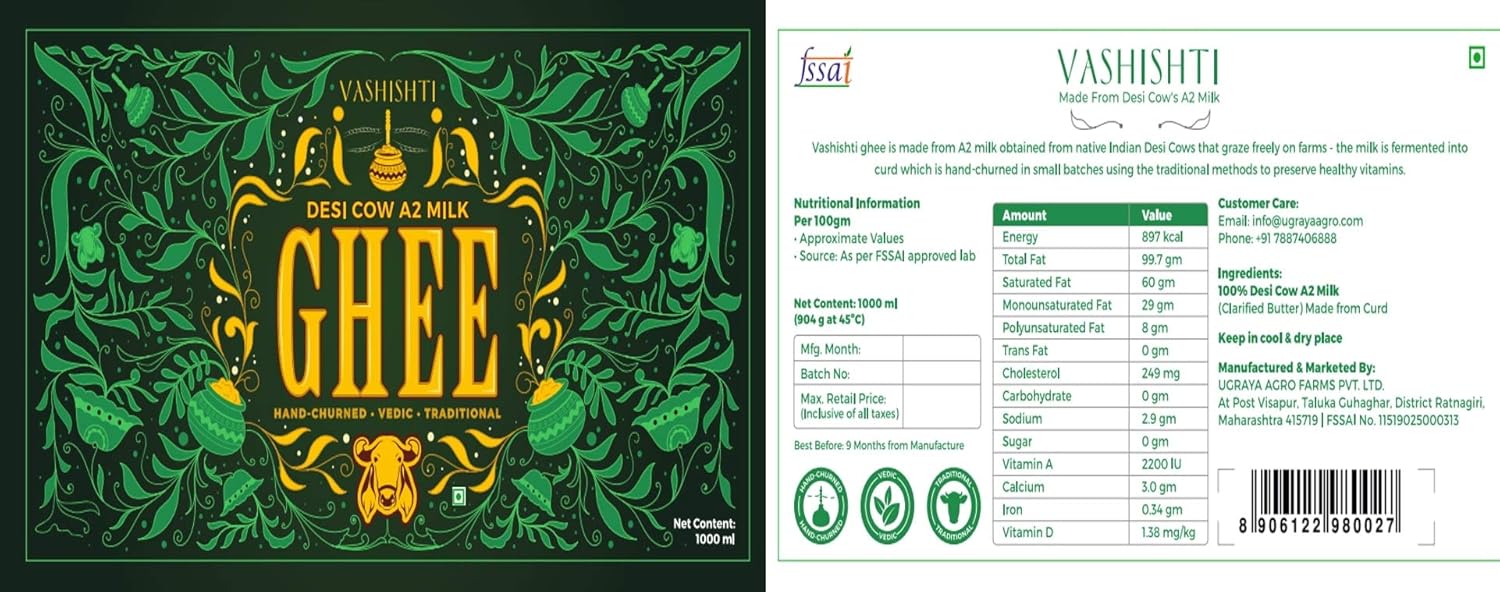 Vashishti A2 Desi Cow Milk Ghee Is Pure And Exclusively Made From Milk Cows; Desi Cow A2 Ghee Is Made From Cultured Curd And Not From Cream