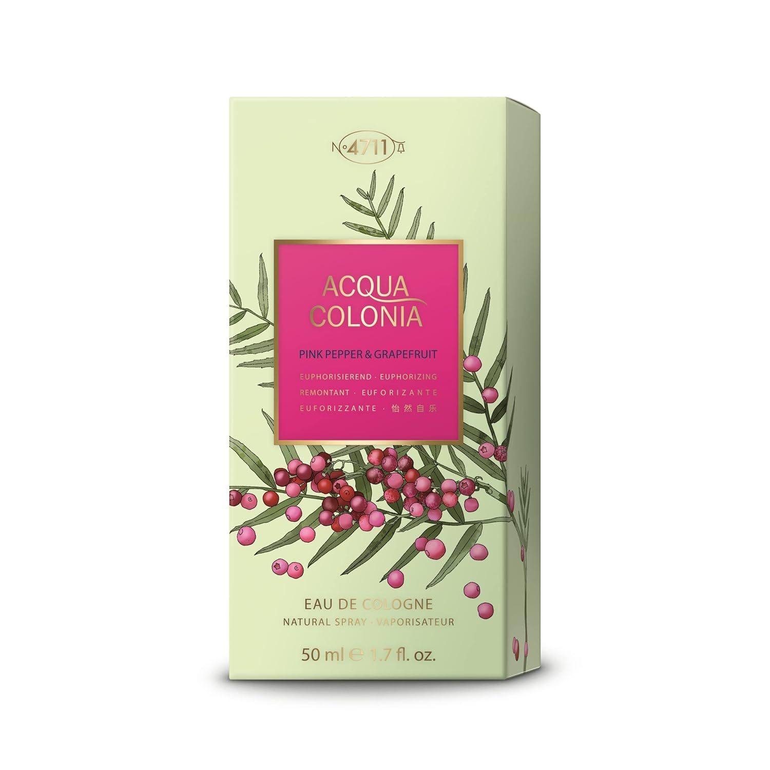 Experience the fragrance full of life and euphoria with 4711 Acqua Colonia Pink Pepper & Grapefruit, an uplifting composition that takes you deep into the world of tropical forest in South America. In the humid, hot air, the pink pepper that thrives on tall trees unfolds its enchantingly spicy aroma. The fruity, lively grapefruit provides a vivid contrast, combining with the fruity spice of the pink pepper to form an exciting Eau de Cologne.