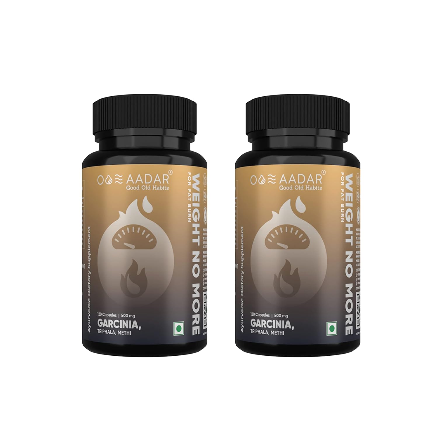 Aadar Weight No More, Natural Weight Loss & Fat Loss Ayurvedic Fat Cutter Supplement, Belly Fat Burner For Women & Men, Garcinia, Triphala, Methi | 120 Capsules 150gm 0.3lbs Each Pack Of 2