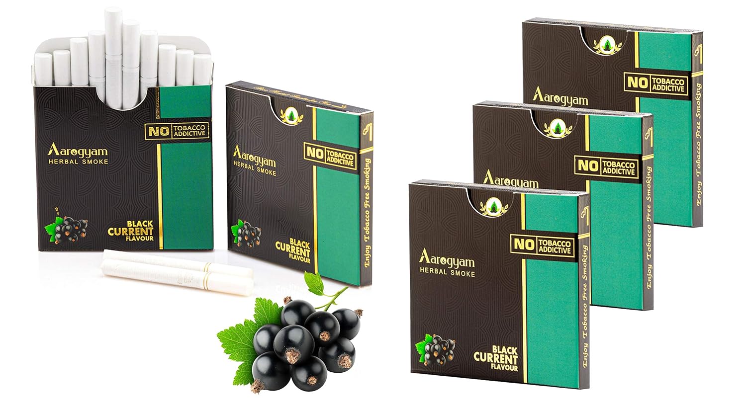 Aarogyam Herbals 100% Tobacco & Nicotine Free Cigarette For Relieve Stress & Mood Enhance Product For Smokers - 10 Sticks In Each Packet (Black Current Flavour, Pack Of 5)
