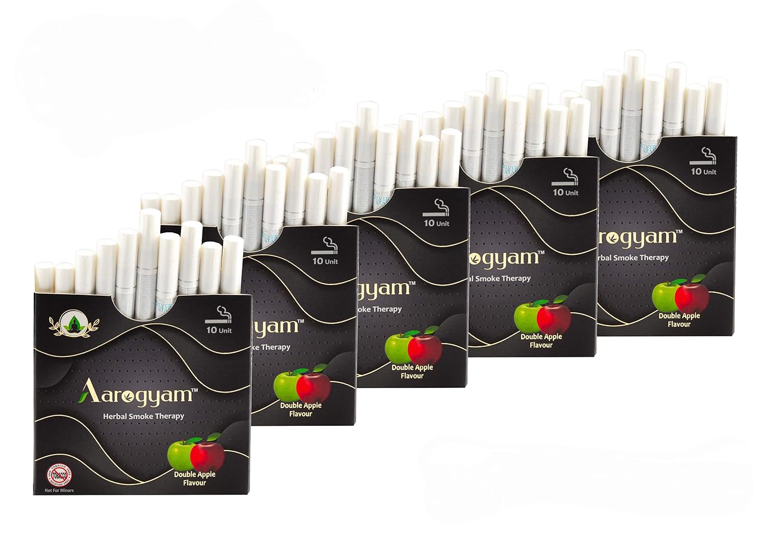 Aarogyam Herbals 100% Tobacco & Nicotine Free Cigarette For Relieve Stress & Mood Enhance Product For Smokers - 10 Sticks In Each Packet Double Apple Flavour, Pack Of 5