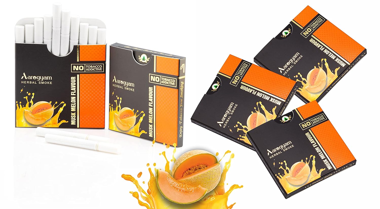 Aarogyam Herbals 100% Tobacco & Nicotine Free Cigarette For Relieve Stress & Mood Enhance Product For Smokers - 10 Sticks In Each Packet Muskmelon Flavour, Pack Of 5
