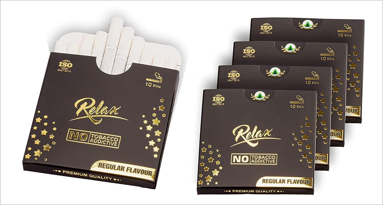 Aarogyam Herbals 100% Tobacco & Nicotine Free Cigarette For Relieve Stress & Mood Enhance Product For Smokers - 10 Sticks In Each Packet (Relax Regular Flavour Pack Of 5)