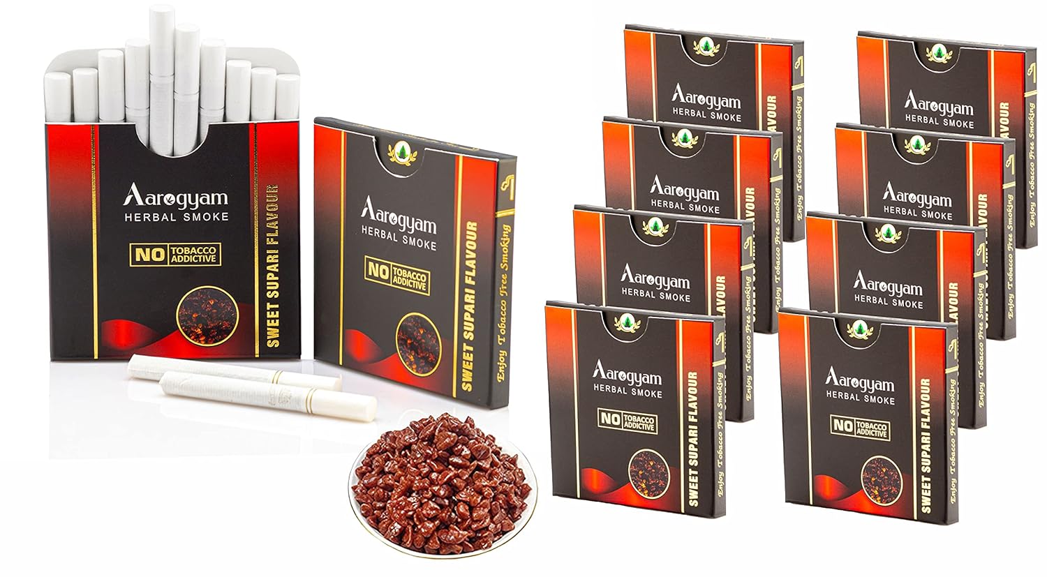 Aarogyam Herbals 100% Tobacco & Nicotine Free Cigarette For Relieve Stress & Mood Enhance Product For Smokers - 10 Sticks In Each Packet Sweet Supari Flavour, Pack Of 10