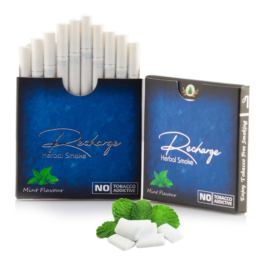 Aarogyam Herbals Cigarette 100% Tobacco & Nicotine Free Smoke For Relieve Stress & Mood Enhance Of Smokers - 10 Sticks In Each Packet Recharge - Mint Flavour 1 Packet