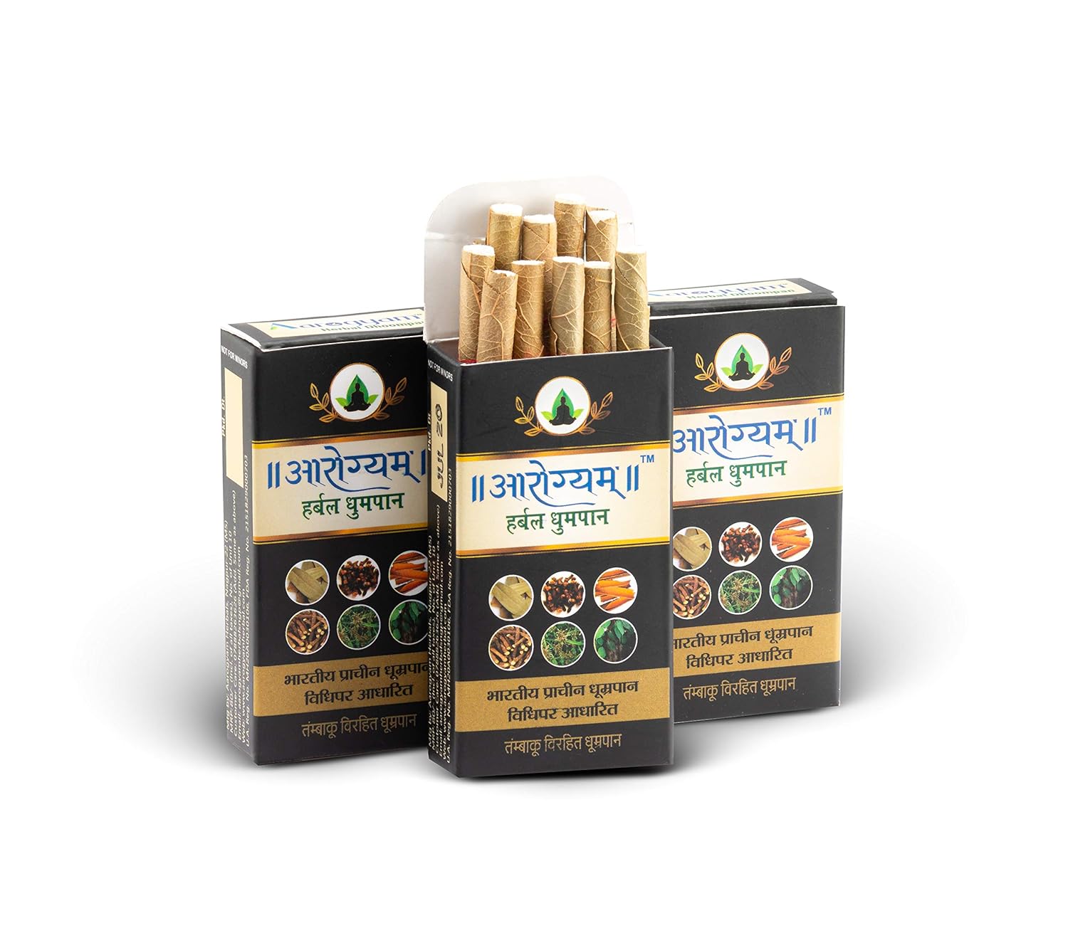 Aarogyam Herbals Filter Bidi 100% Tobacco & Nicotine Free Smoke For Cough, Cold & Relieve Stress - 10 Sticks In Each Packet Pack Of 3