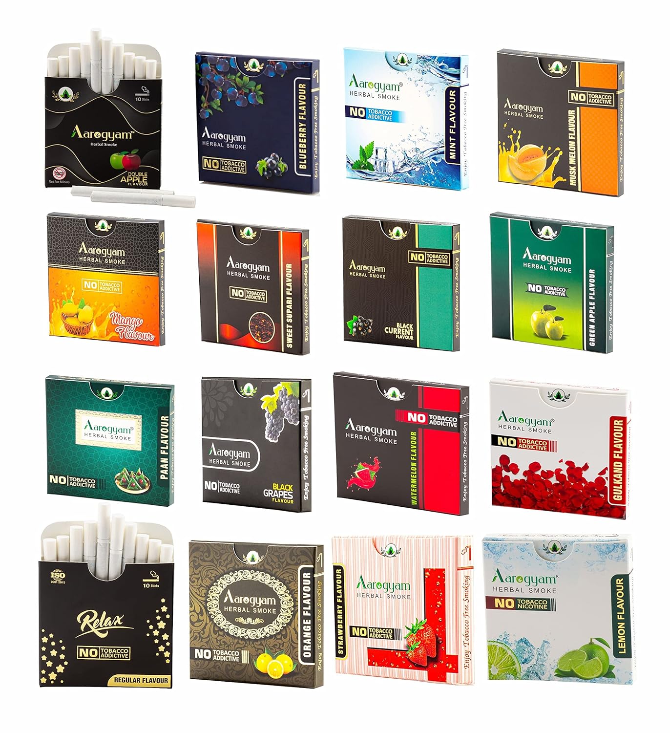 Aarogyam Herbals Flavoured Cigarette 100% Tobacco & Nicotine Free Smoke For Relieve Stress & Mood Enhance Product - 10 Sticks In Each Packet 16 Packets