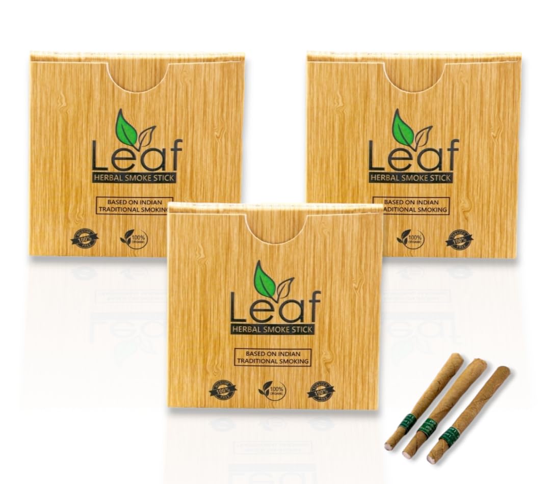 Aarogyam Herbals Leaf Regular Hand Rolled Cigarette With Tendu Leaves 100% Tobacco & Nicotine Free Smoke For Cough, Cold & Relieve Stress - Regular Flavour 3 Packets 10 Sticks X 3