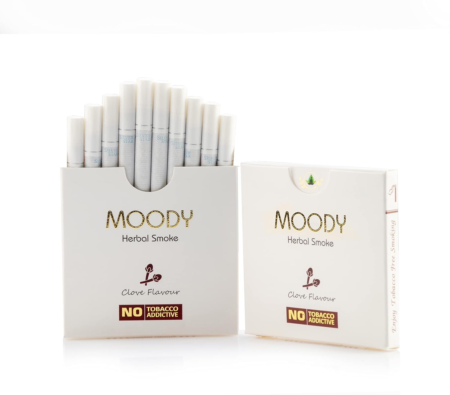 Aarogyam Herbals Moody Cigarette 100% Tobacco & Nicotine Free Smoke For Relieve Stress & Mood Enhance Of Smokers - 10 Sticks In Each Packet Clove Flavour 1 Packet