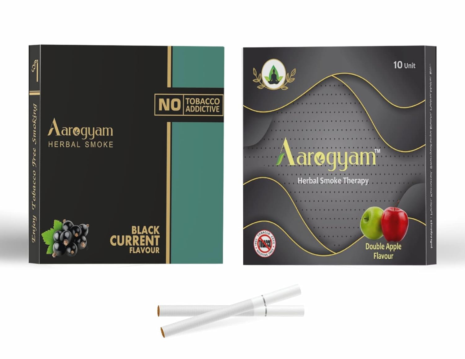 Aarogyam Herbals Pack Of 2 Flavours 100% Tobacco & Nicotine Free Cigarette For Relieve Stress & Mood Enhance Product Double Apple, Black Current - 10 Sticks X 2 Packets