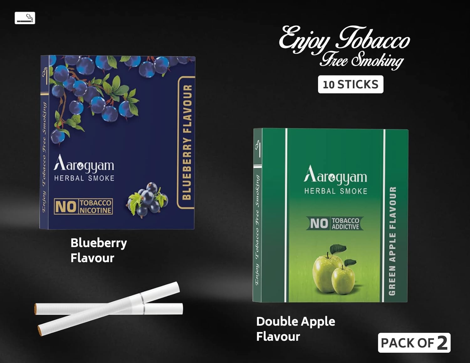 Aarogyam Herbals Pack Of 2 Flavours 100% Tobacco & Nicotine Free Cigarette For Relieve Stress & Mood Enhance Product Green Apple, Blueberry - 10 Sticks X 2 Packets