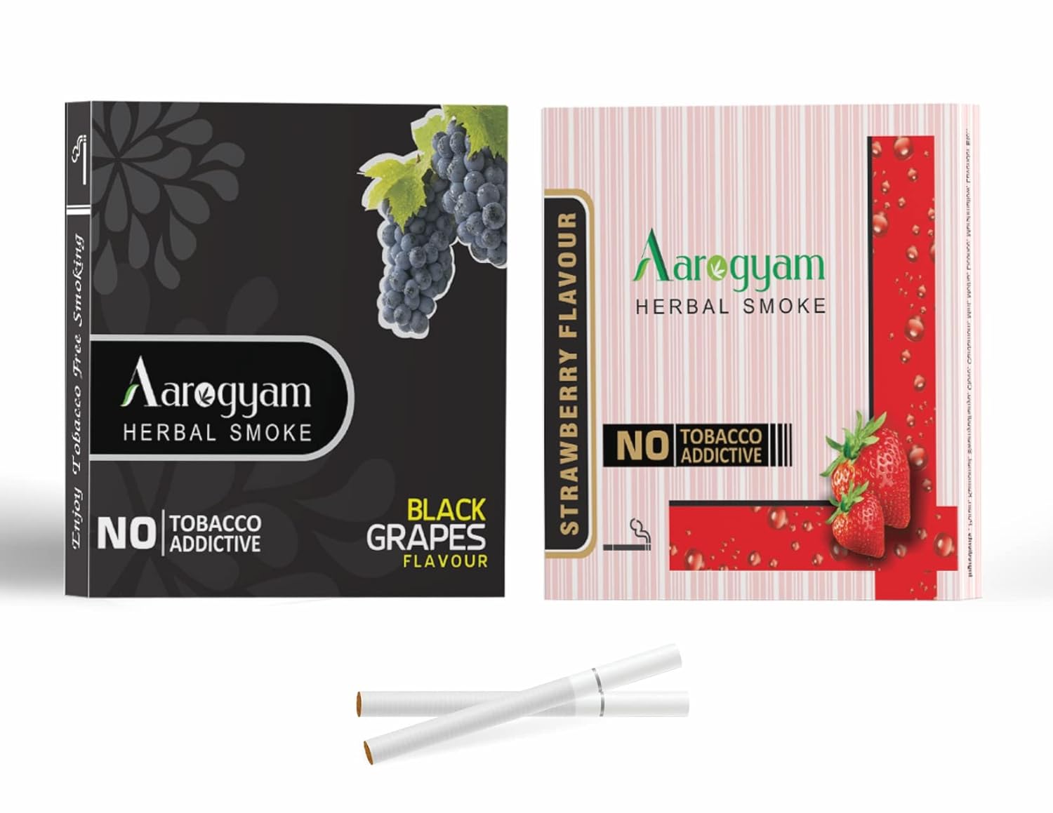Aarogyam Herbals Pack Of 2 Flavours 100% Tobacco & Nicotine Free Cigarette For Relieve Stress & Mood Enhance Product Strawberry, Black Grapes - 10 Sticks X 2 Packets