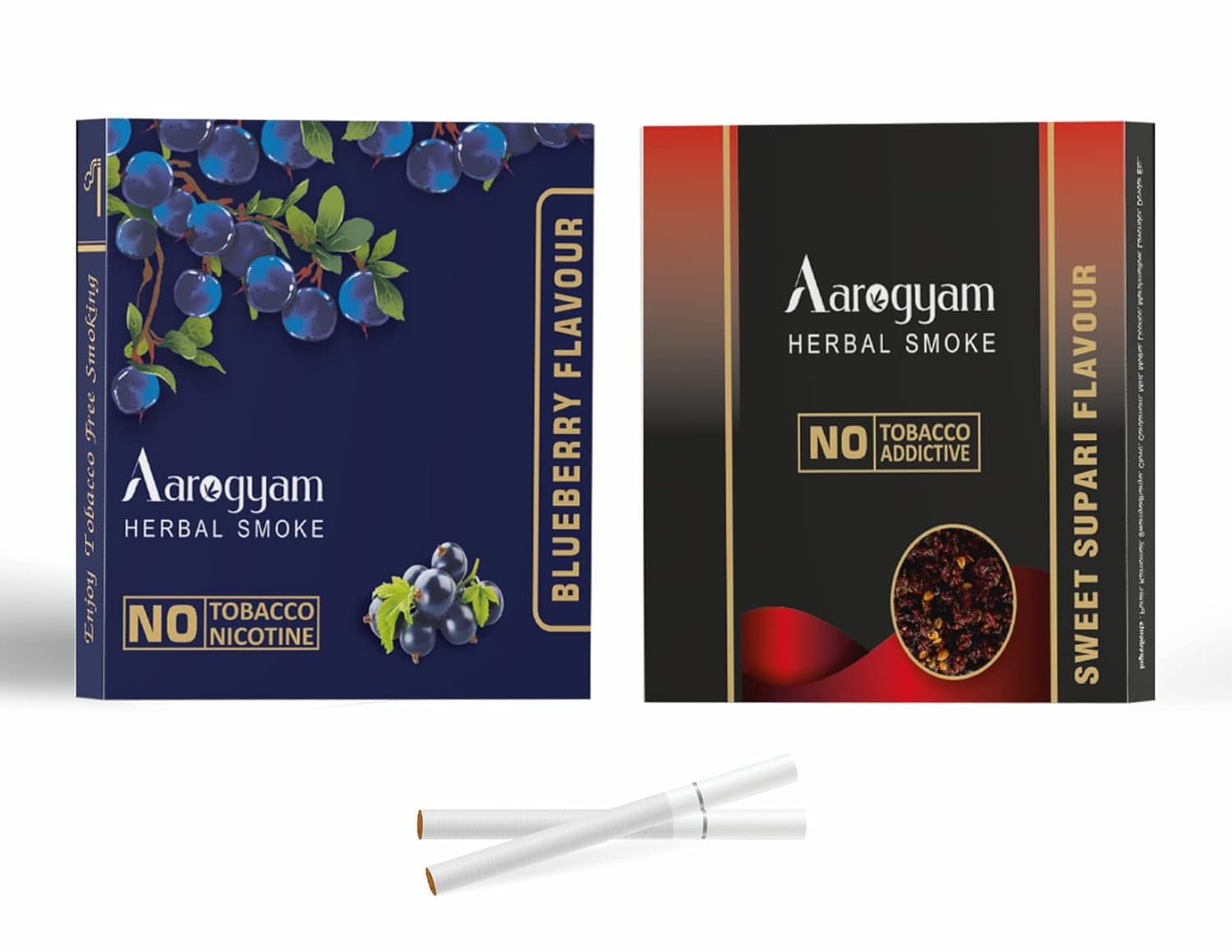 Aarogyam Herbals Pack Of 2 Flavours 100% Tobacco & Nicotine Free Cigarette For Relieve Stress & Mood Enhance Product Sweet Supari - Blueberry - 10 Sticks X 2 Packets
