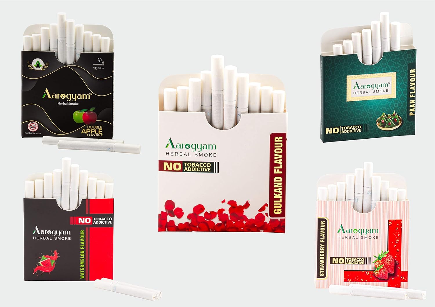 Aarogyam Herbals Tobacco & Nicotine Free Herbal Flavor Cigarette For Relieve Stress - Double Apple, Gulkand, Watermelon, Strawberry, Paan Masala Flavour - Pack Of 5 50 Sticks