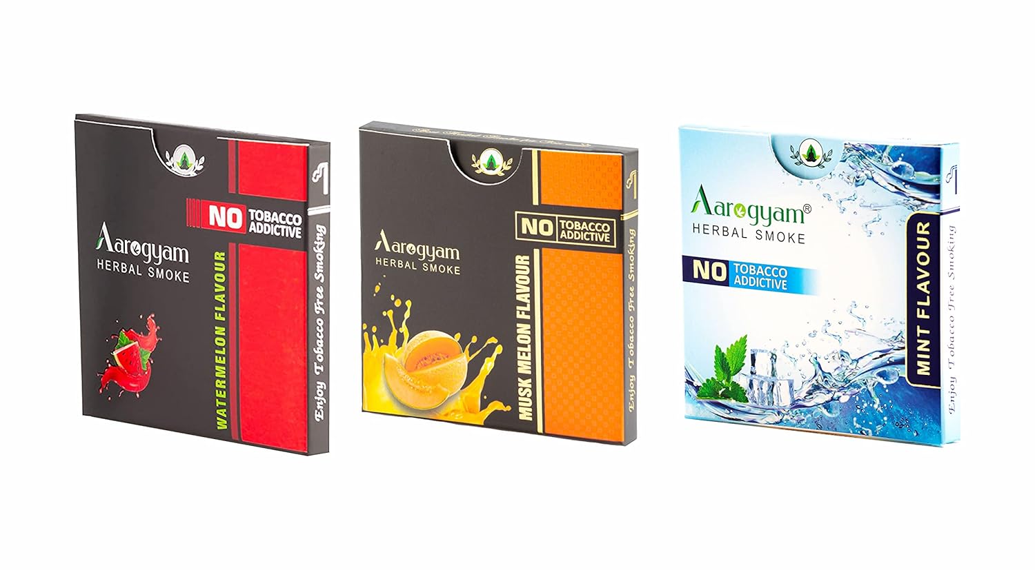 Aarogyam Herbals Tobacco & Nicotine Free Herbal Flavored Cigarette For Relieve Stress And Mood Enhance Product - Muskmelon, Watermelon, Mint Flavour - Pack Of 3 30 Sticks